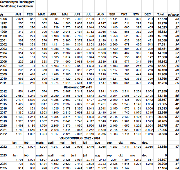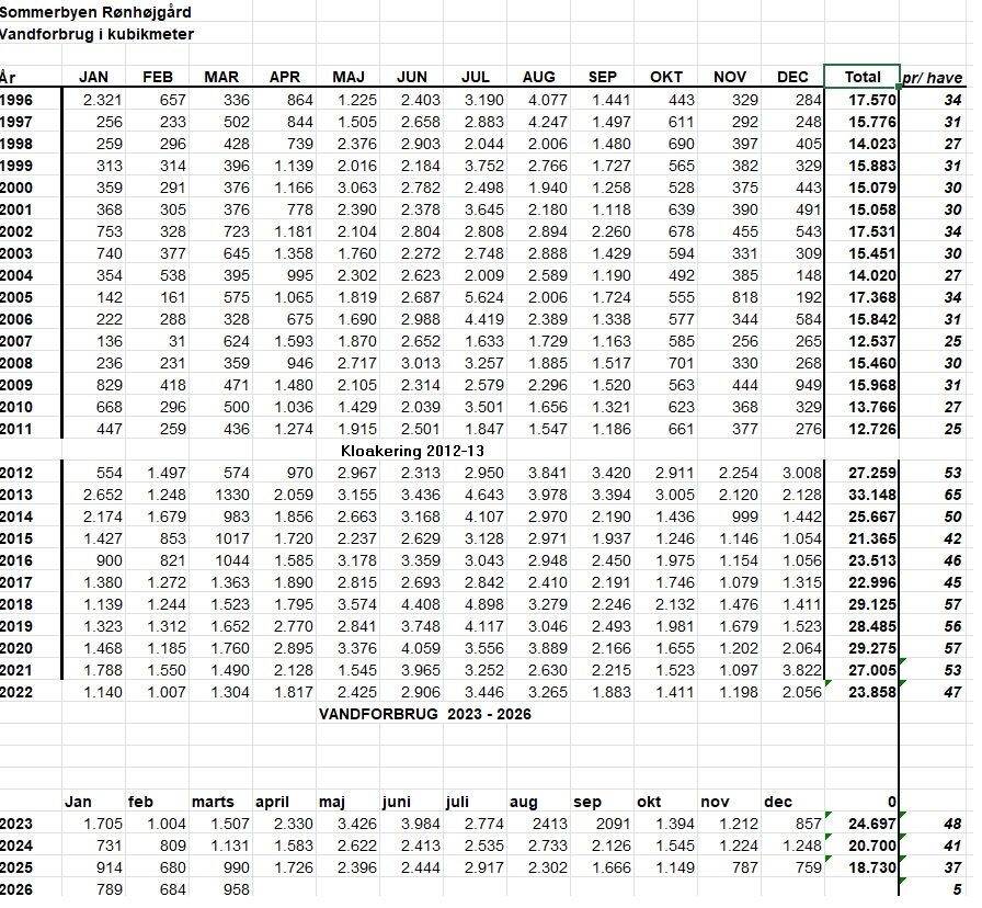 Her kan du få et samlet oveblik over vandforbruget for de forskellige år.
